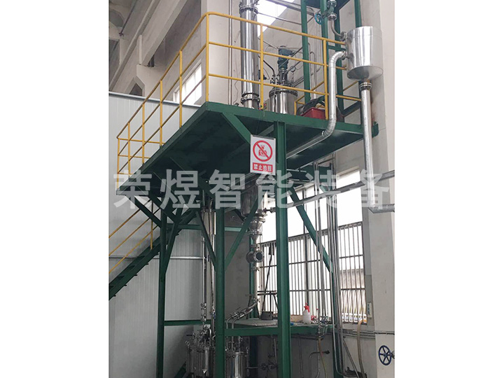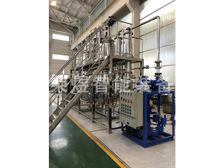 結構:本設備主要包括薄膜蒸發器、內置冷凝器、二級冷凝器、原料罐、成品罐、低沸點罐、高沸點罐等部件組成,全部由不銹鋼制造。